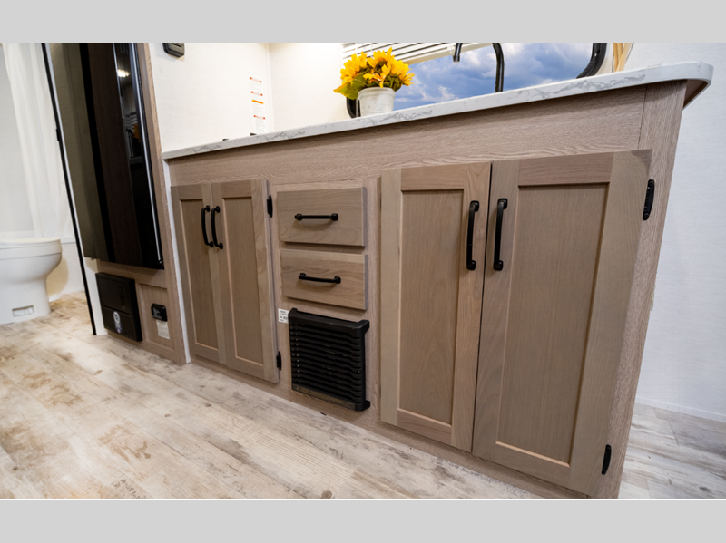 The seamless synthetic vinyl roof and diamond plate lower front provide a durable trailer made to last, and the high-performance vinyl flooring throughout will be easy to keep clean. Each model includes LED interior lights, wood ceiling trim, laminated countertops with vinyl T-molding, and many more interior comforts. You will also appreciate the tankless water heater, the multiple USB ports to keep your electronics charged, and the power awning that will provide shade while you visit outdoors.