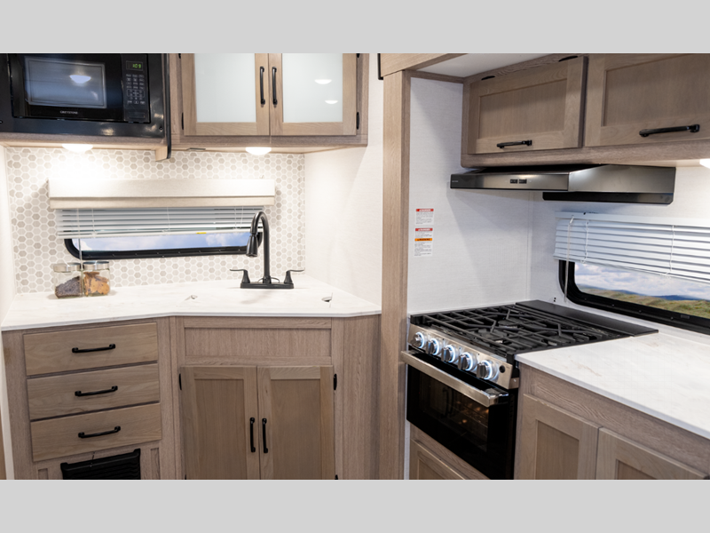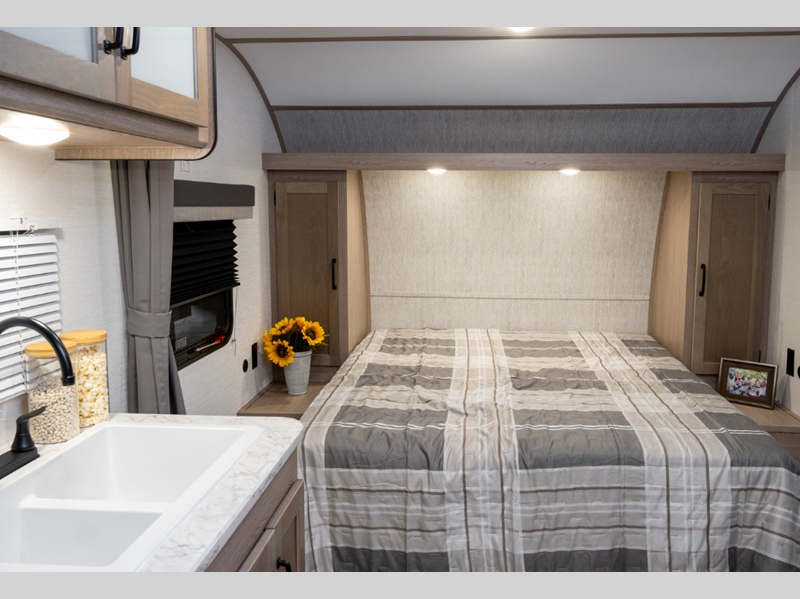 Sleeps 3 Slides 1 Length 22 ft 11 in Ext Width 8 ft Ext Height 11 ft 2 in Int Height 6 ft 8 in Hitch Weight 400 lbs Dry Weight 4360 lbs Cargo Capacity 3027 lbs Fresh Water Capacity 36 gals Grey Water Capacity 29 gals Black Water Capacity 29 gals Tire Size 14" Furnace BTU 20000 btu Available Beds Queen Refrigerator Type Everchill Refrigerator/Freezer Refrigerator Size 10.7 cu ft Cooktop Burners 3 Number of Awnings 1 LP Tank Capacity 20 lbs Water Heater Type Tankless AC BTU 13500 btu Awning Info Electric with LED Lights Axle Count 2 Number of LP Tanks 2 Shower Type Radius Electrical Service 30 amp Similar Floorplans