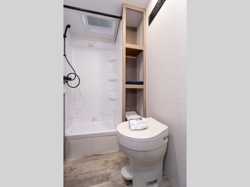 Sleeps 5 Slides 1 Length 23 ft 4 in Ext Width 8 ft Ext Height 10 ft 6 in Int Height 6 ft 8 in Hitch Weight 530 lbs Dry Weight 4430 lbs Cargo Capacity 1300 lbs Fresh Water Capacity 35 gals Grey Water Capacity 34 gals Black Water Capacity 34 gals Furnace BTU 20000 btu Number Of Bunks 2 Available Beds Queen Refrigerator Type Everchill Refrigerator/Freezer Refrigerator Size 10.7 cu ft Cooktop Burners 3 Number of Awnings 1 LP Tank Capacity 20 lbs Water Heater Type Tankless AC BTU 13500 btu Awning Info Electric with LED Lights Axle Count 2 Number of LP Tanks 1 Shower Type Tub/Shower Combo Electrical Service 30 amp Similar Floorplans