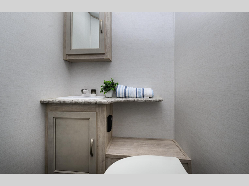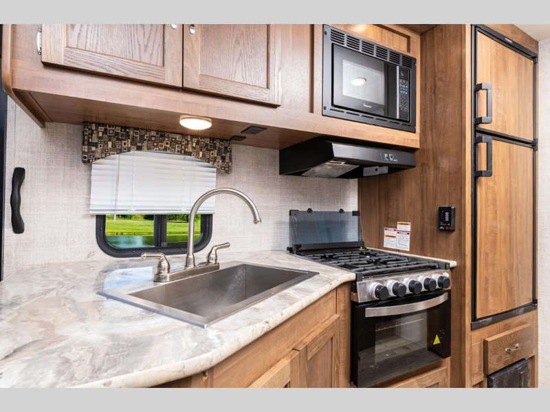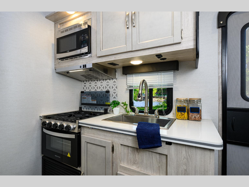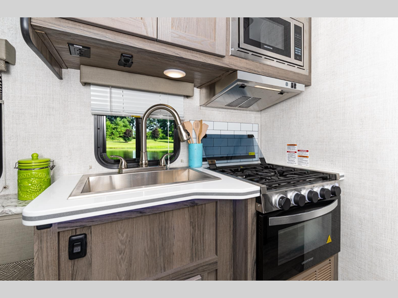 These trailers were made for those needing to tow with a smaller SUV or mini-van who want to take an occasional guest or two with them. Just because they are lightweight doesn't mean they lack in construction or features either. They are built with vacuum-bonded sidewalls with a composite layer for added durability plus wood cabinet doors and solid surface countertops for a more residential look. You will also appreciate the Vista Comfort Package that comes with a tankless water heater, power tongue jack, 100 watt solar panel, and so much more!